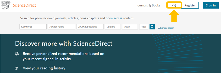 如果您在远程访问设置中遇到问题,可点击ScienceDirect页面右上角的“问号”在线提问,或者拨打电话:+86 1085208765。